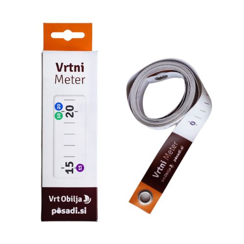 Velik tisk, točne oznake zelenjav in trpežen material so glavne značilnosti vrtnega metra Vrt Obilja & Posadi.si. Sadilne razdalje so skladne s priporočili Vrta Obilja, ki so podrobno predstavljene v knjigi Zelenjava od semena od pridelka.
